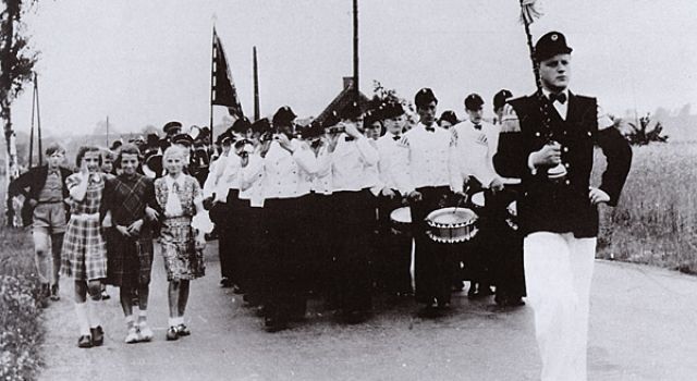 Für die heutige Jugend ist es kaum noch vorstellbar, wie sich die Situation in unserer Region kurz nach 1945 darstellte: Viele Häuser und Existenzen waren zerstört, viele junge Männer waren nicht aus dem Krieg bzw. der Gefangenschaft zurückzukommen, und die Familien hatten alle Hände voll damit zutun, langsam wieder auf die Beine zu kommen. Das gemeinschaftliche Leben war entsprechend zum Erliegen gekommen - es gab einfach Wichtigeres zu tun. Die wirtschaftliche Not bedrängte die Menschen natürlich am meisten. Jeder war daher bemüht, erst mal wieder ein Dach über den Kopf zu bekommen und für das tägliche Essen zu sorgen. Als diese Grundbedürfnisse langsam gedeckt waren, wuchs schon bald der Wille, auch als und in Gemeinschaft wieder mehr unternehmen zu können. Dafür brauchte man natürlich Vereine. Im Frühsommer 1950 entschloss sich daher eine Hand voll Altkalkarer Männer, das Tambourcorps aus der Taufe zu heben. Der erste Schritt in Richtung Wiederbelebung des Vereinslebens in Altkalkar war somit getan; fast genau ein Jahr später sollte ein zweiter folgen: